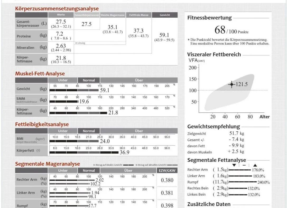 - Segmentale Muskelmasse (Arme, Beine, Rumpf)